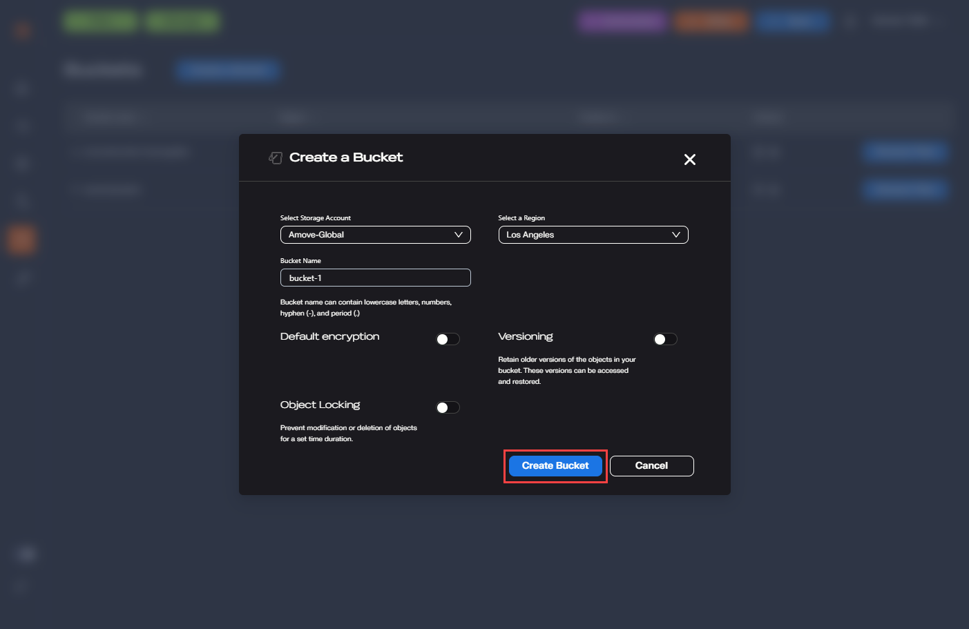 Step 4: Click **Create Bucket** to finalize the bucket creation.
