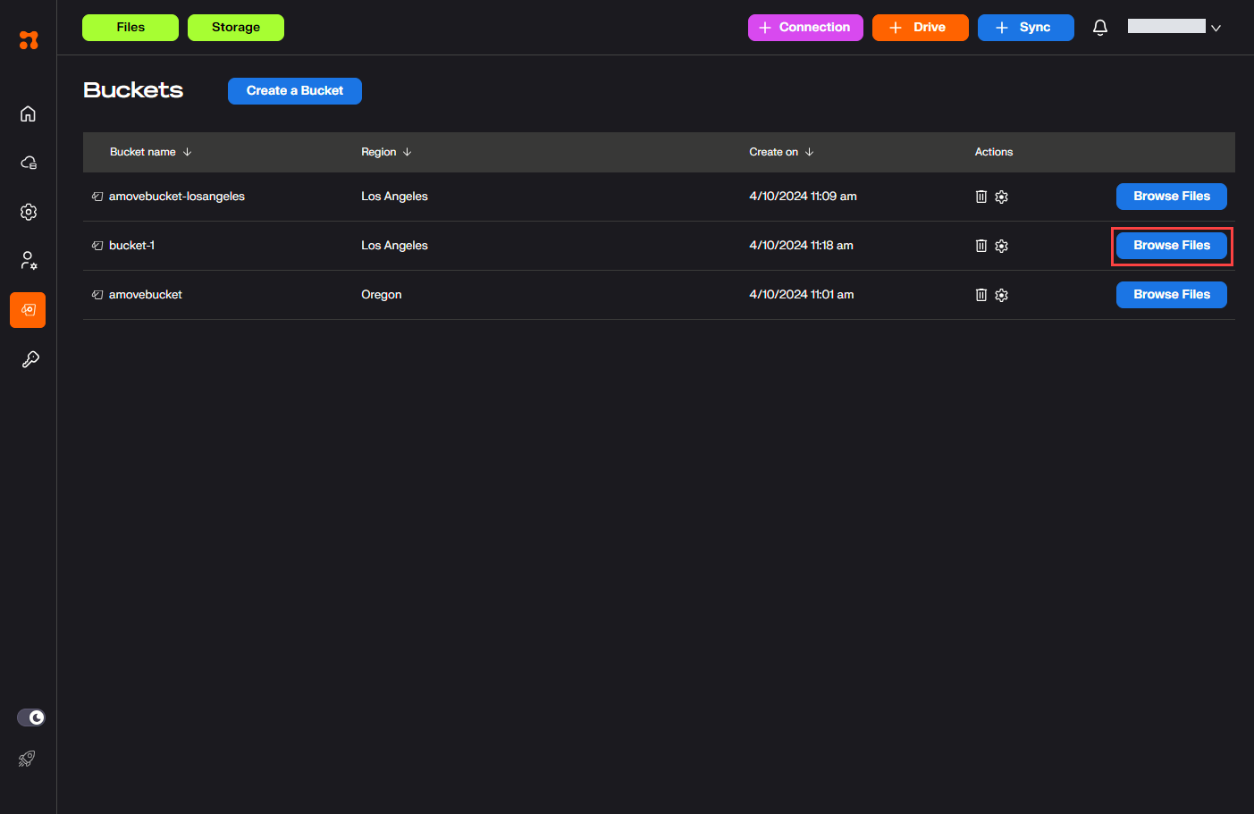 Step 1: Click on the **Browse Files** button next to the desired bucket.