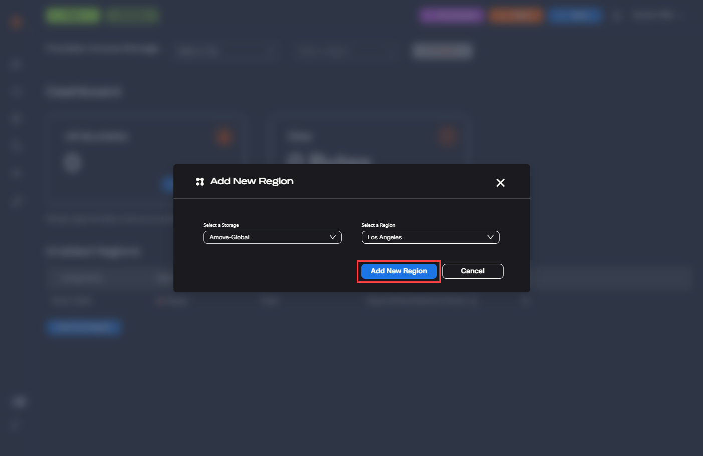 Step 1: Click on the **Add new Region** button.