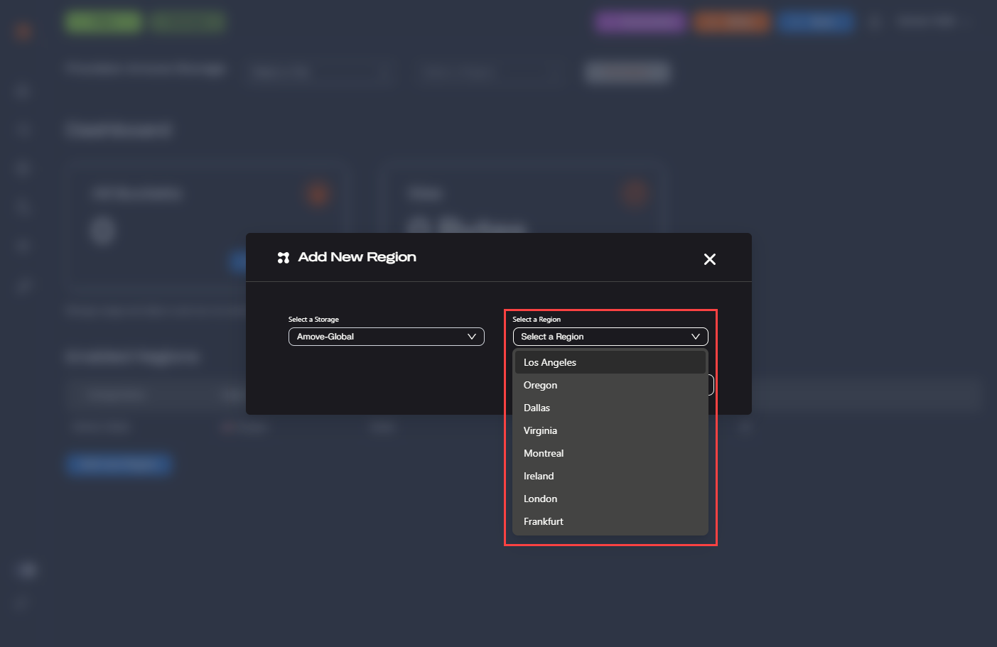 Both regions can be managed and edited using the **Enabled Regions** section on the dashboard.