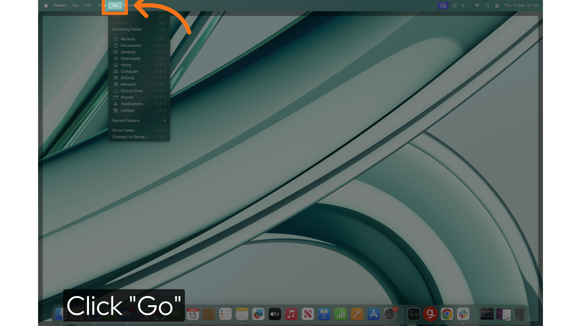 Once the application is deleted we'll remove any other files related to Amove Click. Select the Go option in the menu bar to quickly access system directories.