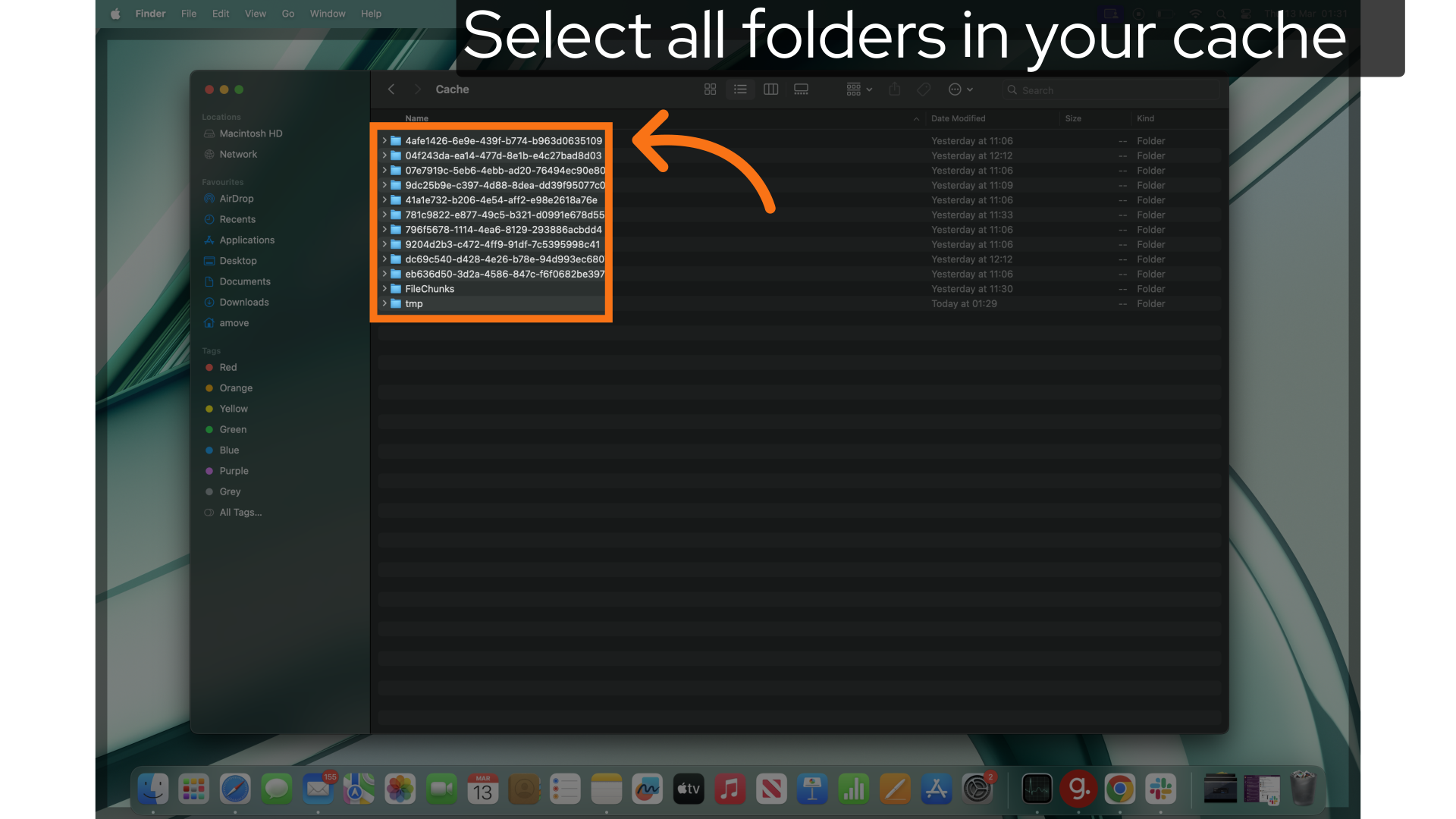 ### 28. Select all folders in your cache